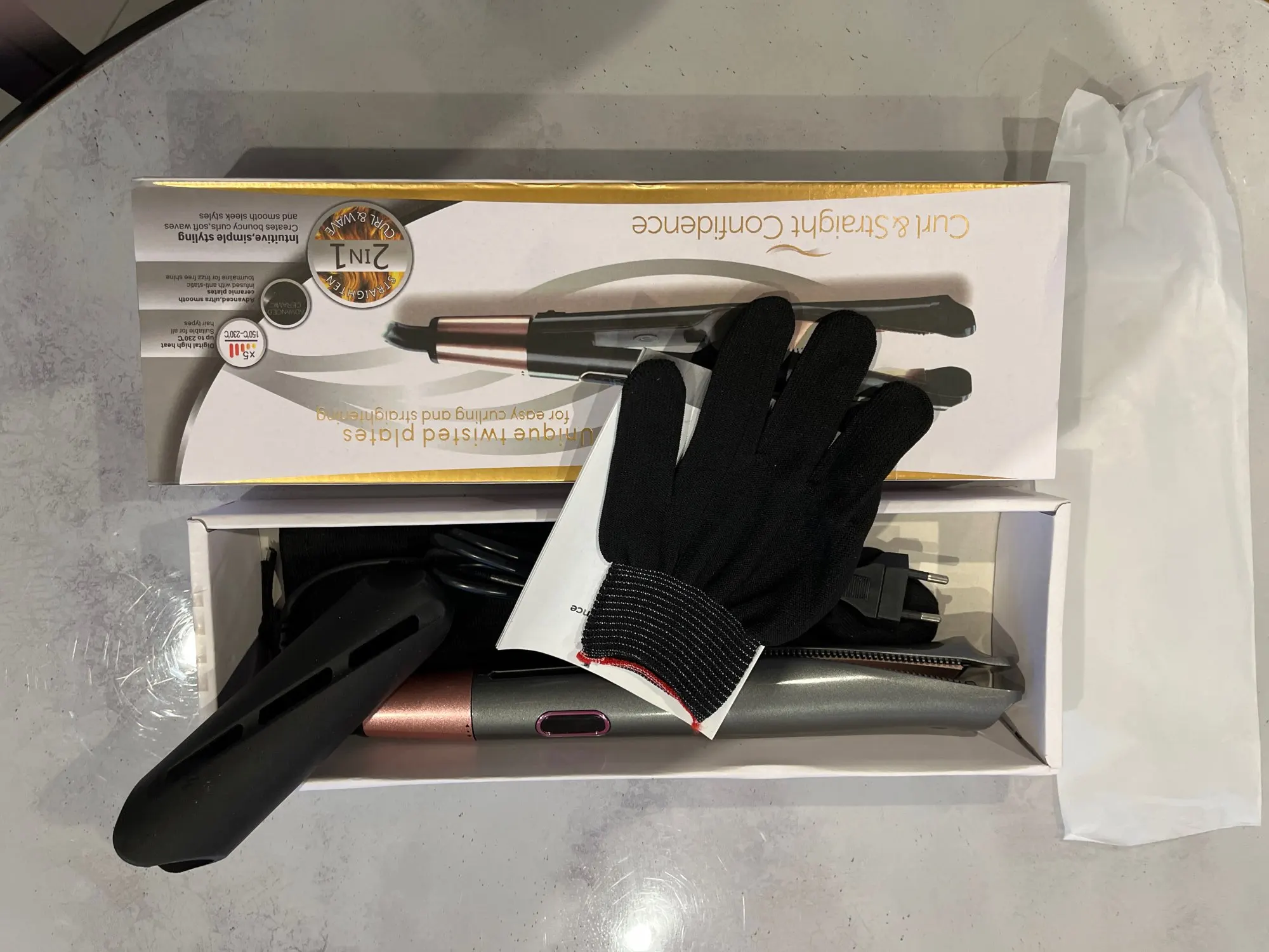 The 2-in-1 Hair Straightener & Curling Iron features ceramic titanium plates that heat quickly and evenly from 100°C–230°C, helping you create salon-ready looks in minutes.